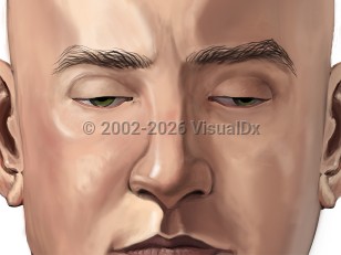 Patients are afebrile with initial complaints of blurred vision, diplopia, and mydriasis with photophobia, ptosis, ophthalmoplegia, hoarseness, dysarthric speech, and dysphagia. Constipation, dry mouth, and urinary retention may also occur. Patients remain awake, alert, and oriented throughout the entire illness. Symptoms progress in a descending pattern to produce a skeletal muscle paralysis that may cause sudden respiratory arrest and death if untreated. Severe poisonings may require months of ventilatory support.